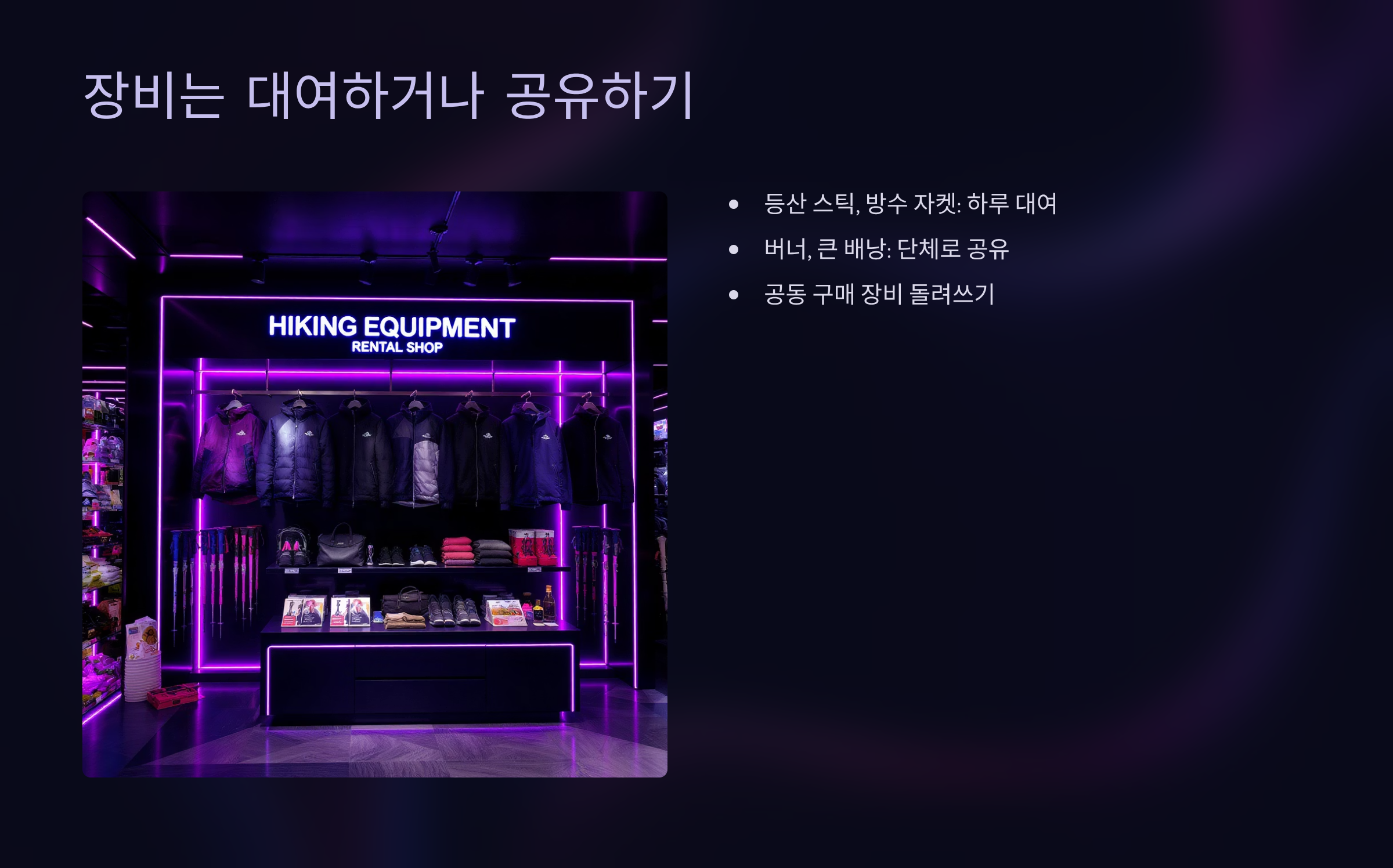 ✅ 장비는 대여하거나 공유하기