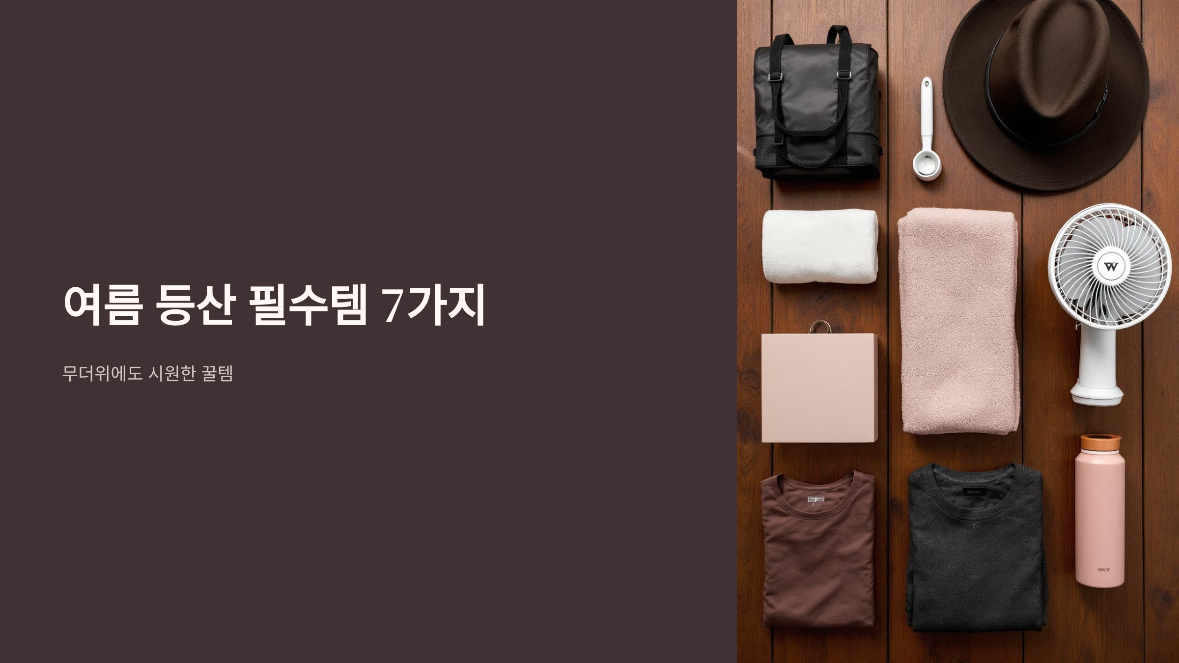 이 글은 광고가 전혀 아니며, 제가 직접 사용해보고 효과를 느낀 아이템만 소개하는 내용이에요. 올여름 등산을 계획하고 계신다면, 아래 7가지 필수템만 잘 챙겨도 산행이 훨씬 즐거워질 거예요.