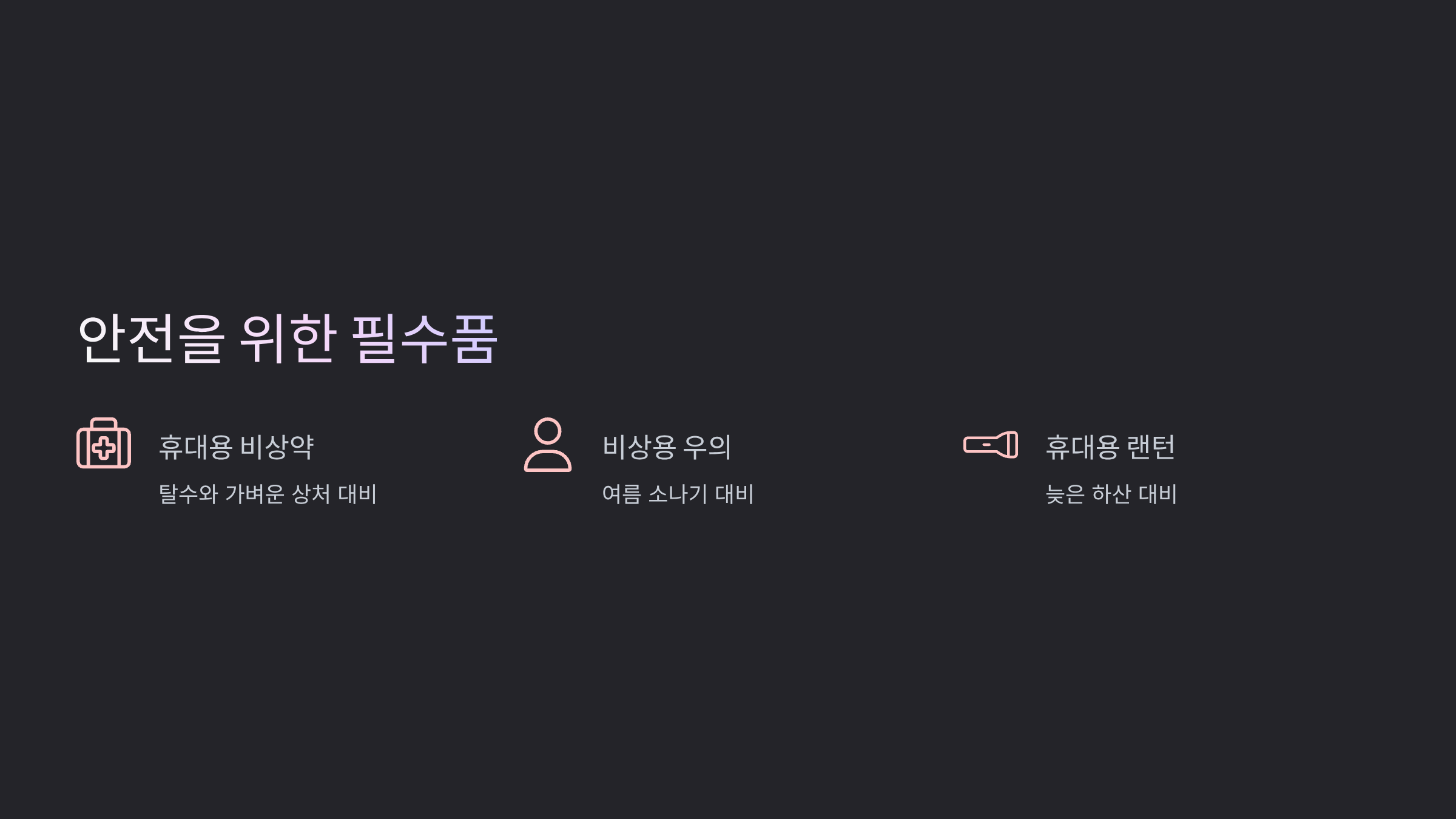 더위뿐 아니라 갑작스러운 상황에도 대비해야 해요.