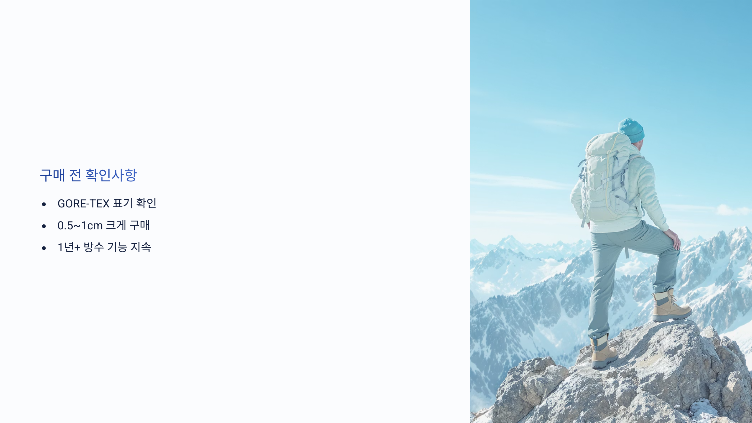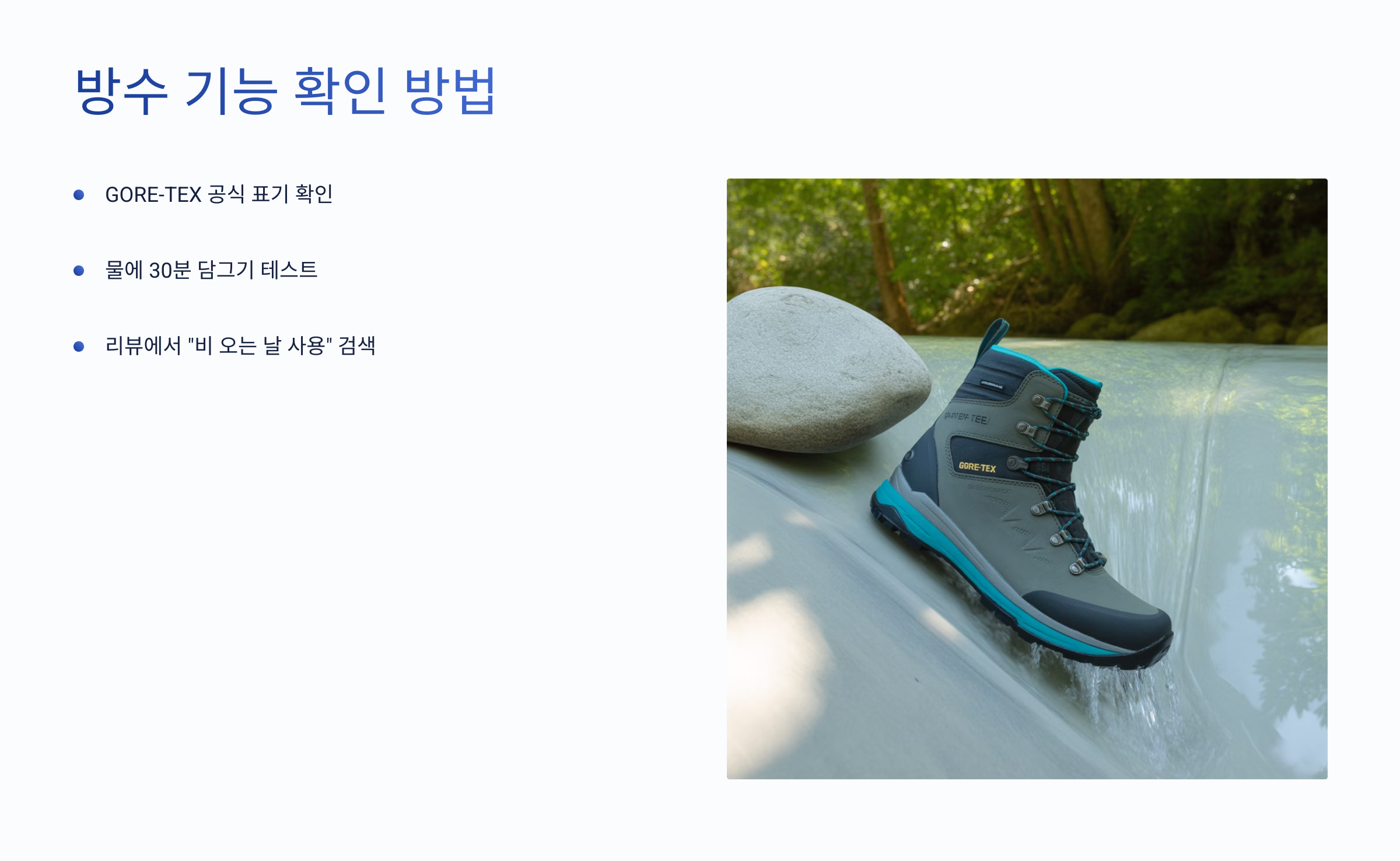 좋은 방수 등산화를 고르려면 몇 가지 확인 포인트가 있어요.